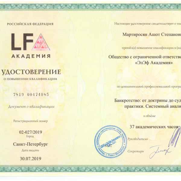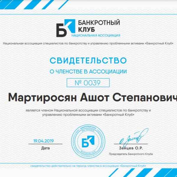 Более 3-х лет является членом Национальной ассоциации специалистов по банкротству и управлению проблемными активами «Банкротный клуб».